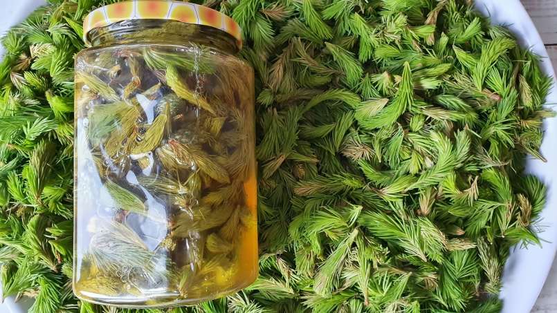 Las yemas de pino deben ser lo más jóvenes posible, de color verde crudo y de no más de 1-2 cm de longitud.